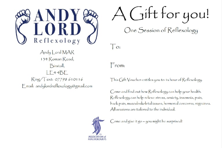 For just £35 you will get a 1 hour treatment and full introduction to reflexology. Just email me on andylordreflexology@gmail.com and I’ll let you know the process.