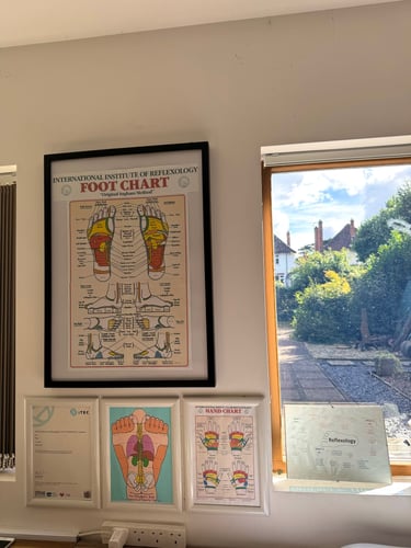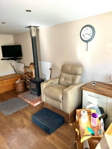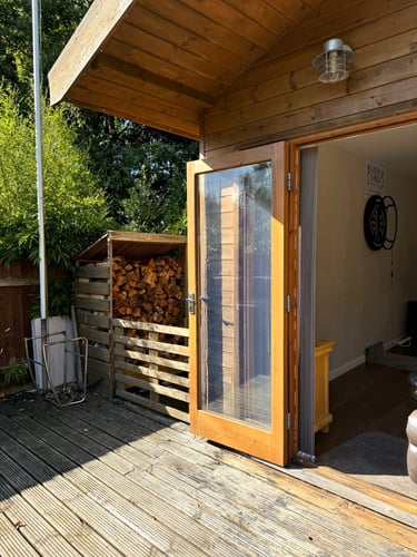 The reflexology cabin is the perfect place to wind down and relax. The treatment room consists of a reclining lazy boy armchair and a log burner, creating a cozy atmosphere that's ideal for soothing your senses.